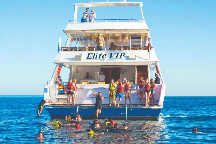 Luxury Experience: Enjoy a day at sea aboard a vessel designed for the ultimate in comfort and elegance. Gourmet Dining: Savor exquisite meals freshly prepared on board using the finest ingredients. Unforgettable Snorkeling: Dive into the crystal-clear waters of the Red Sea to discover some of the world’s most vibrant coral reefs and diverse marine life. Exclusive Service: Relax and indulge with personalized waiter service offering unlimited drinks throughout the day.